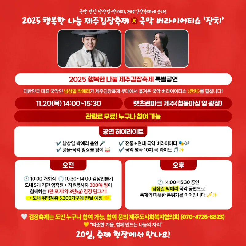 “2025 행복한 나눔 제주김장축제 × 국악 버라이어티쇼 잔치”