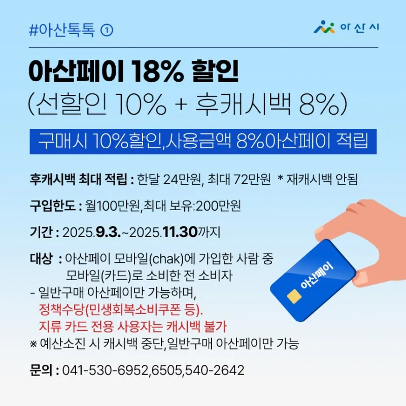 아산페이 18%(선할인 10% + 후캐시백 8%) 할인