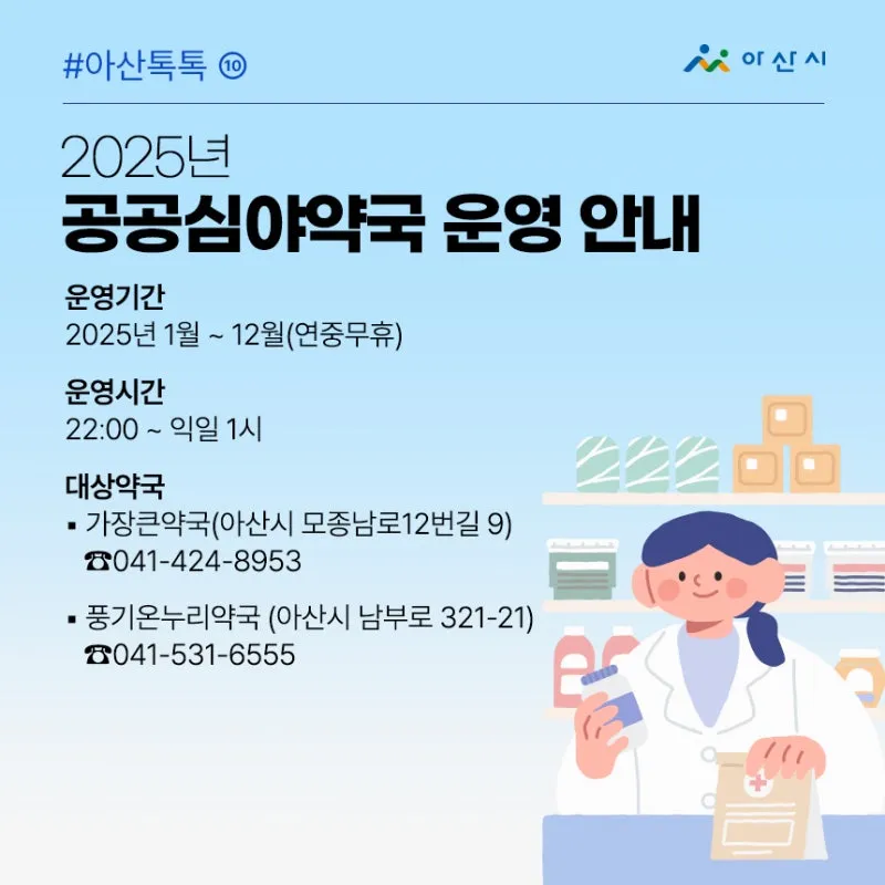 대상약국: 가장큰약국(아산시 모종남로12번길 9) ☎041-424-8953
