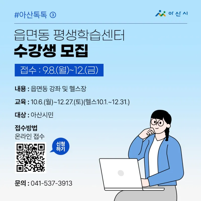신청방법 : 아산시평생학습관 온라인 또는 전화 신청