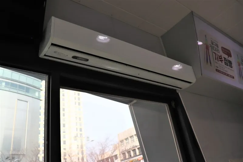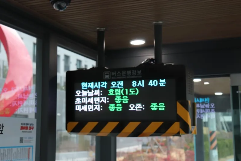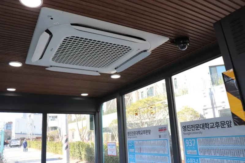 버스정류장에 버스 정보 안내기, 냉난방기,