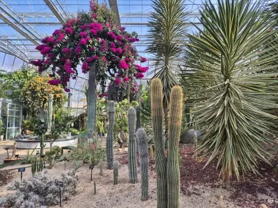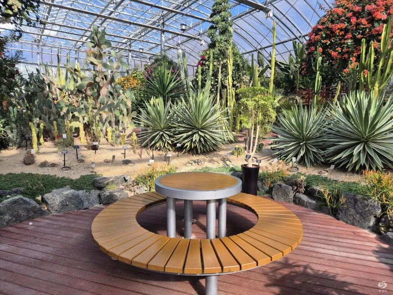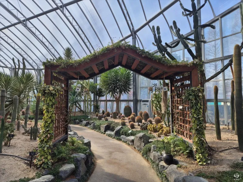 온실 내부는 온도와 습도가 조절되어 있어 선인장들이 최적의 환경에서 자랄 수 있도록 설계되어 있습니다 내부에는 다양한 경관이 조화롭게 배치되어 있어 사진 찍기에도 좋은 장소입니다