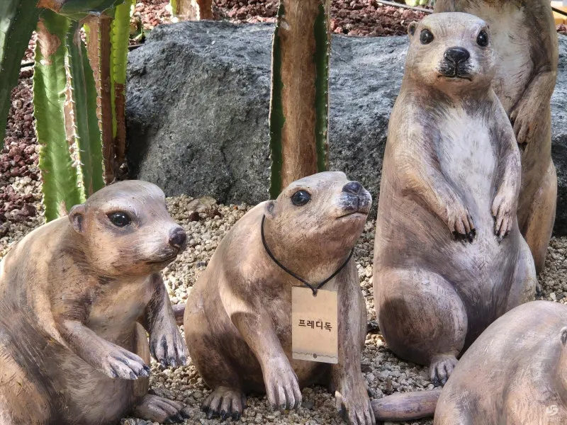 선인장 사이사이에 사막여우, 미어캣, 프레리 독 같은 사막에 사는 동물들도 있습니다