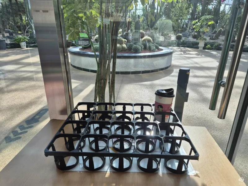 선인장 온실은 음식물 반입금지입니다 입구에 음료 보관대가 설치되어 있으니 온실에 입장하기 전 이곳에 잠깐 보관해 놓으세요