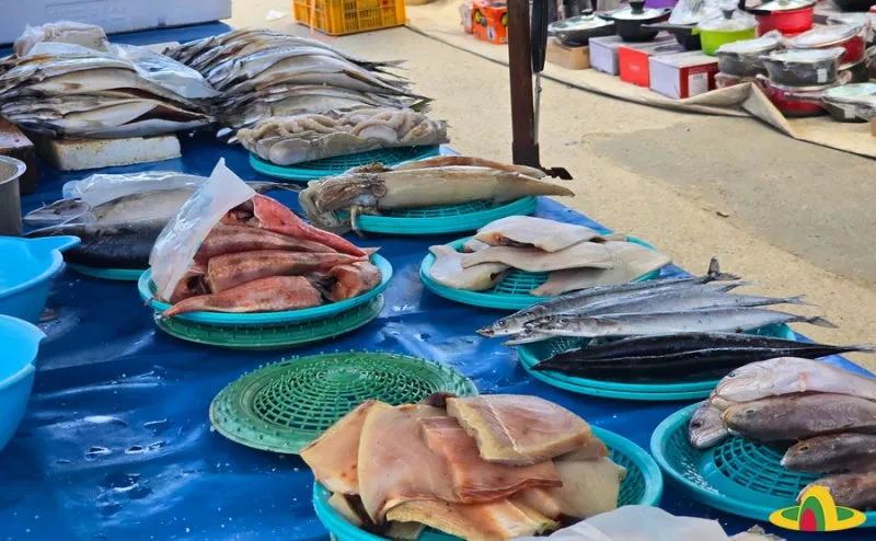 대형 시장은 아니지만 생선도 종류가 다양합니다. 날이 더울수록 건강에 좋은 식재료를 찾게 되는데 한눈에 봐도 싱싱해 보여 줄을 서게 됩니다.