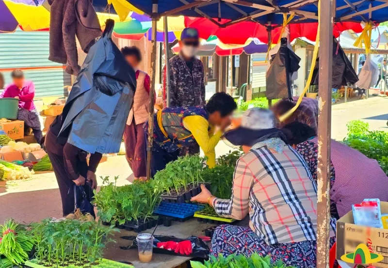 집에서도 씨를 뿌려 간단한 채소를 키우기도 해서 키 작은 여러 모종들에 눈길이 가더라고요. 앞마당이나 작은 텃밭에 한가득 심어놓으면 한 해 채소 걱정 없이 지낼 수 있어서 장날 모종 가게는 인기 만점입니다.