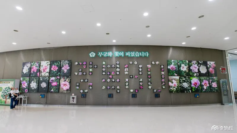 광복 80주년을 기념하기 위해서 무궁화꽃을 전시하고 있었습니다.