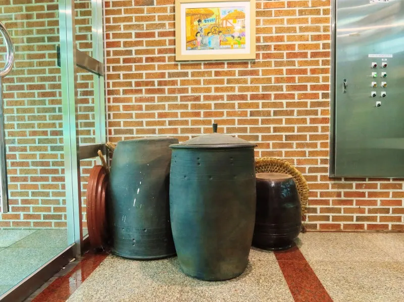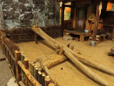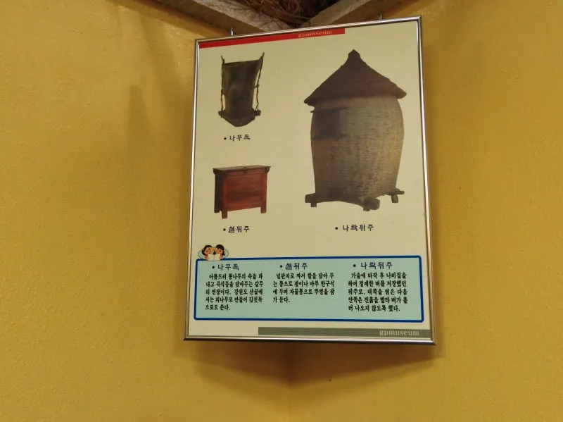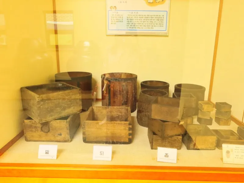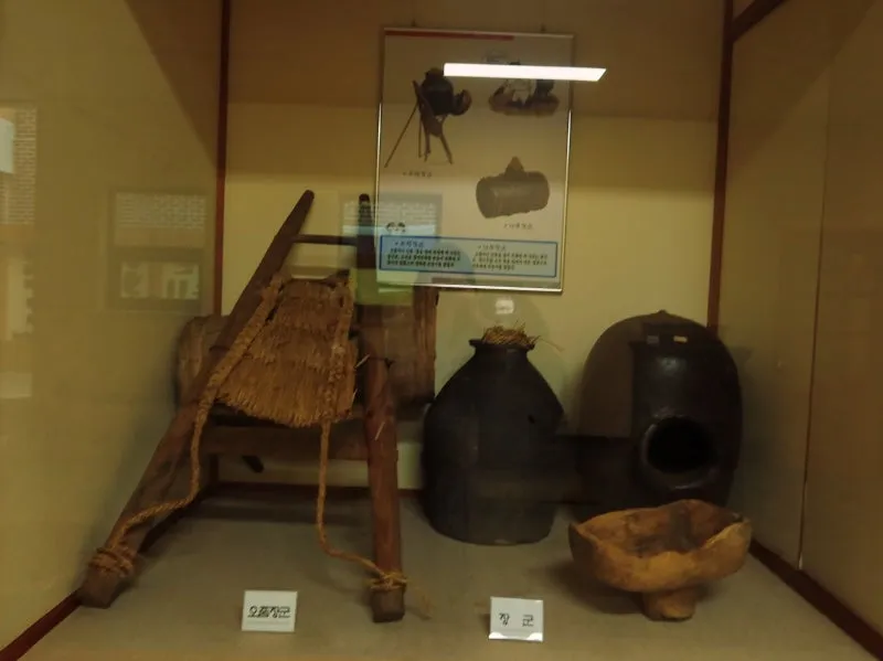 가공관 전시관의 모습습니다. 농작물을 수확하고 보관하는 곳인데요, 뒤주와 장독대의 모습이 인상적입니다. 뒤주는 사도세자의 이야기하고 관련돼 있어서 아이들에게 흥미를 끌기 좋은 소재입니다.