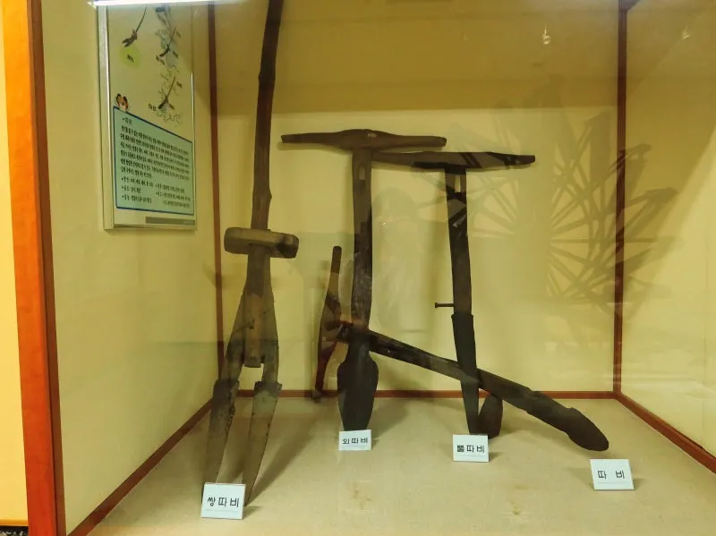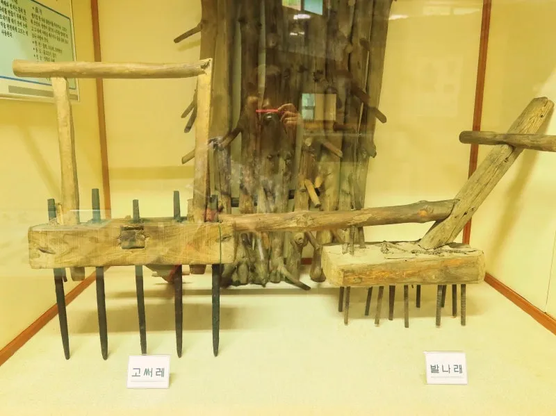 밭갈이관 전시관의 모습입니다. 쟁기, 써래, 호미 등 농사에 관련한 농기구들이 전시돼 있습니다. 옛날 우리나라 전통 농사 방식을 알 수 있습니다. 유치원을 다니는 조카와 함께 방문을 했는데요, 장독대나 호미 등은 그림책에서 본 적 있다며 아는 채를 하는 모습이 귀여웠는데요, 그림책에 있었던 농경 유물의 모습을 실제로 보여주는 박물관이 우리 동네 가까이에 있으니, 아이와 함께 꼭 방문해 보시길 추천드립니다.