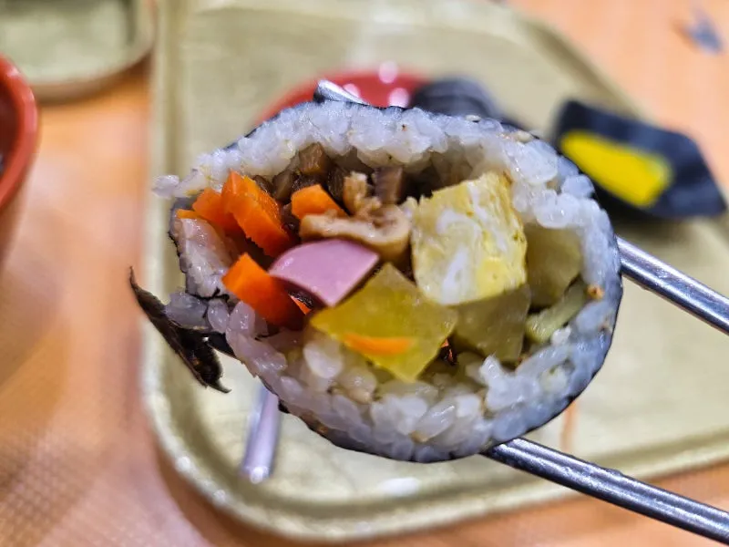 벚꽃길 휴게소를 둘러보는 동안 주문한 음식이 나왔습니다. 일행 말로는 주문과 거의 동시에 나왔다고 하네요. 우동은 일반적인 휴게소 우동 맛이었지만, 김밥은 속이 꽉 차 있어 만족스러웠습니다. 46번 국도를 이용하다가 허기가 질 때 들러 간단히 식사하기에 괜찮은 푸드코트였습니다. 첫 방문이었지만 만족스러워서 앞으로도 종종 이용할 것 같습니다.