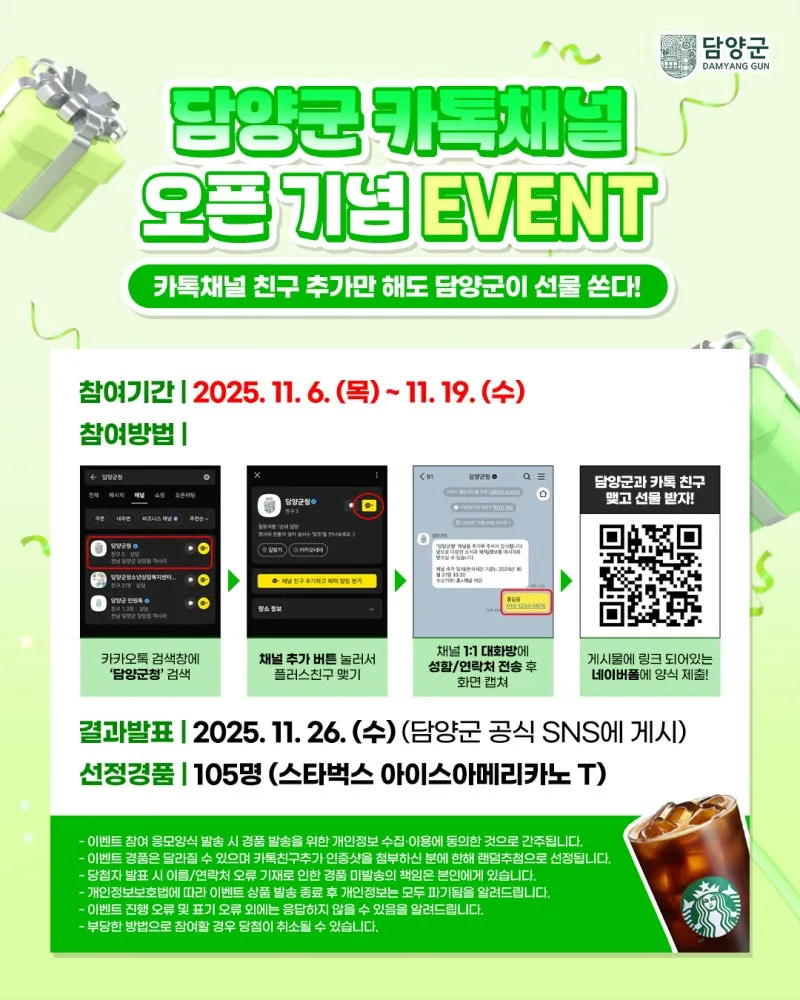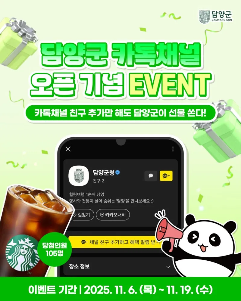 ‘담양군 카카오톡 채널 오픈 기념 이벤트’가 시작됩니다!✨
