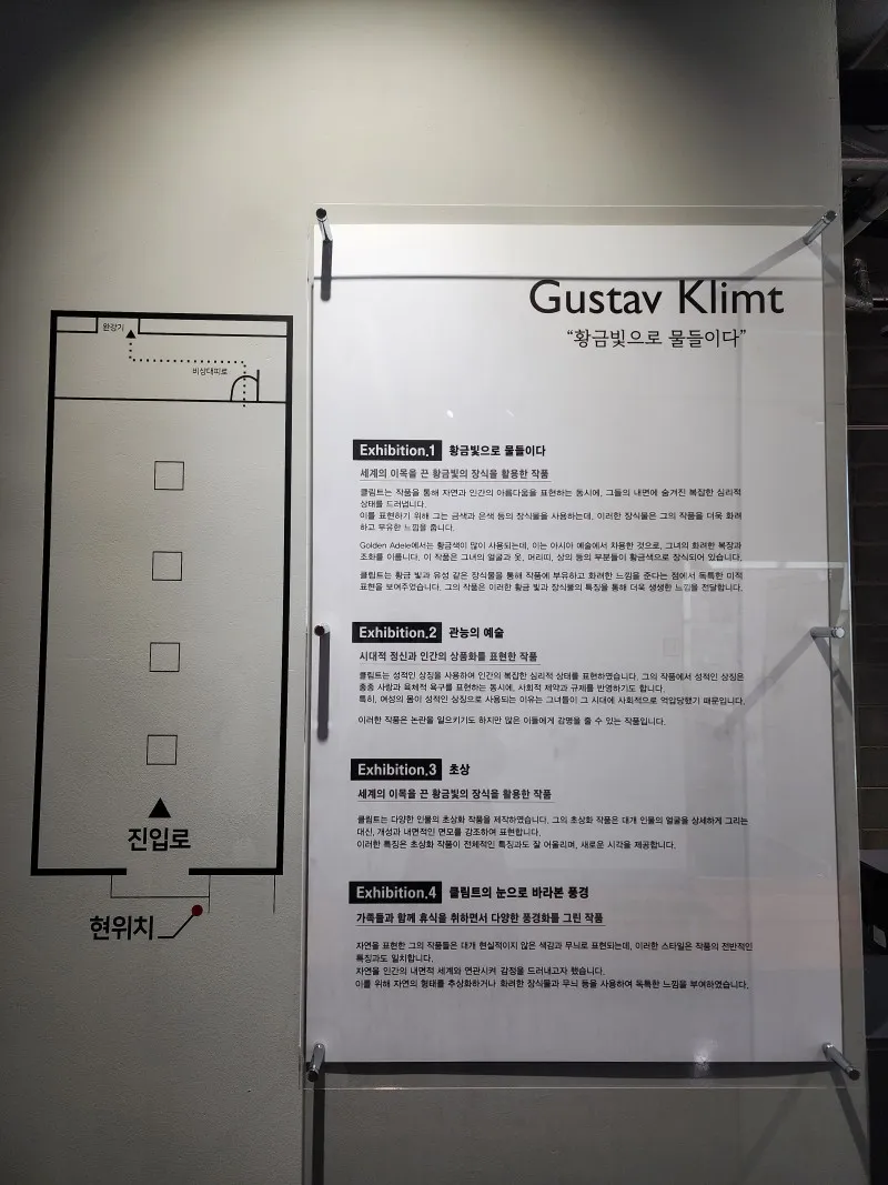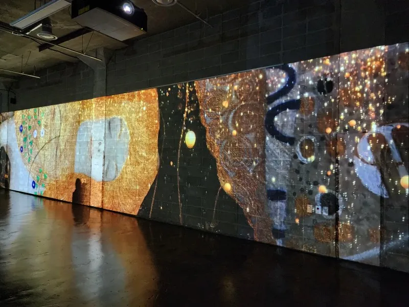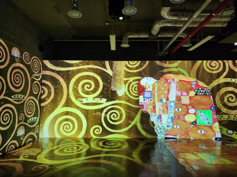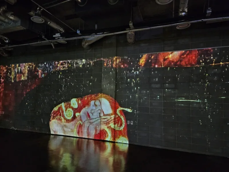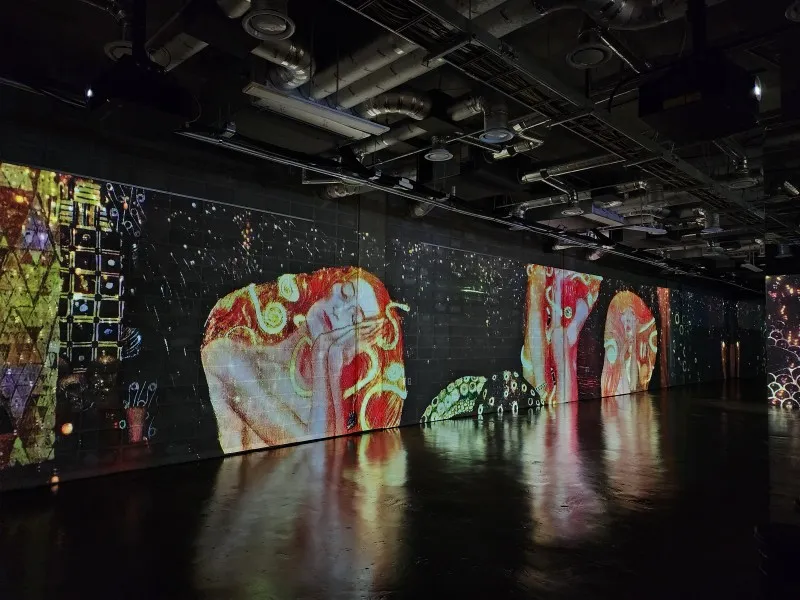 실감 미디어 기술을 활용한 '구스타프 클림트, 황금빛으로 물들이다' 저시는 오스트리아의 대표적인 화가 중 하나인 구스타프 클림트의 작품을 3d 프로젝션 매핑 기술 등을 활용해 살아있는 듯한 형태로 재현하는 전시입니다.