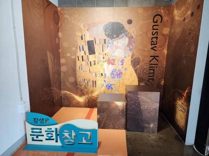 장생포문화창고에서는 현재 구스타프 클림트의 '황금빛으로 물들이다'의 주제로 미디어 아트가 진행되고 있습니다.