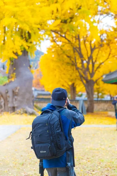 은행나무 잎 아래 앉아 사진을 찍기도 하고,