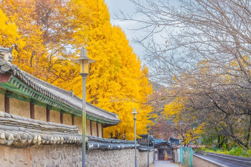 전주 경기전 돌담길 은행나무가 떠오르는데요.