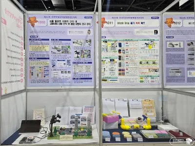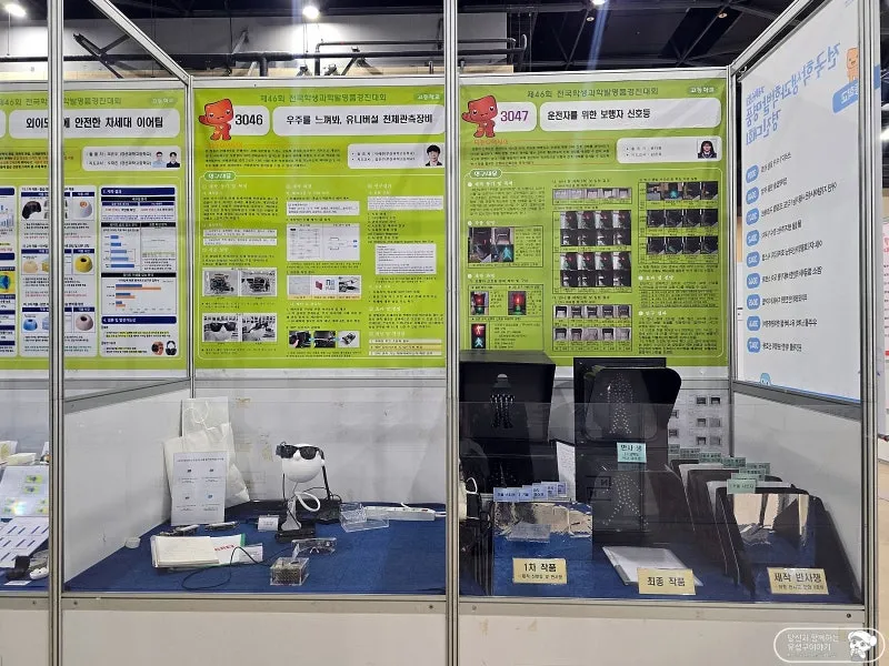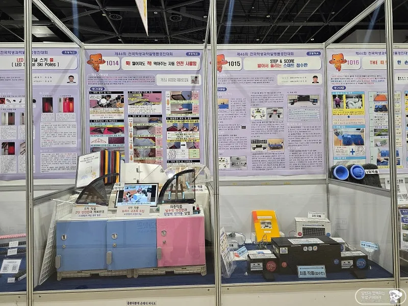 현장에서 들어서자마자 학생들의 톡톡 튀는 아이디어가 고스란히 담긴 발명품들이 눈길을 사로잡았습니다. 초등학생 작품부터 고등학생 작품까지 구분되어 있었는데, 아이들의 발명품에서는 생활 속 불편을 해소하려는 소박한 발상이 돋보였고, 고등학생 작품에서는 과학적 원리와 기술을 응용한 수준 높은 아이디어들이 많았습니다.