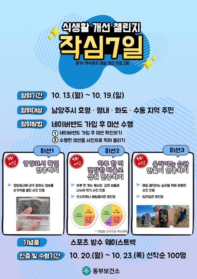 동부보건소 비대면 식생활 개선 챌린지 '작심7일'