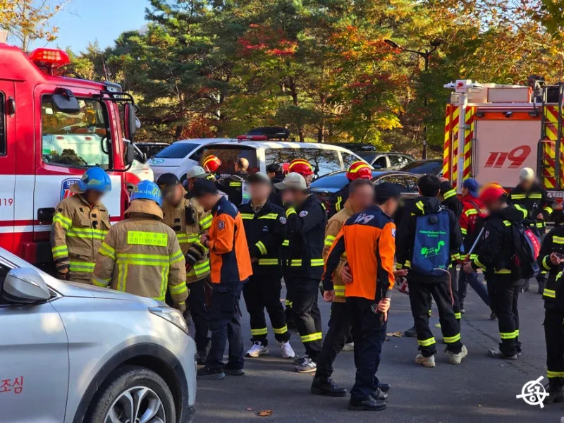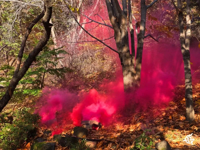 수태골 등산안내소 인근에 붉은색 연막이 피어오르면