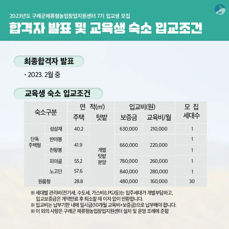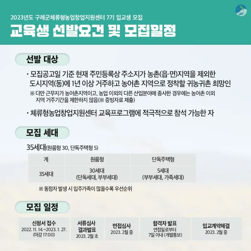 2023년 구례군 체류형농업창업지원센터7기 입교생을 모집합니다