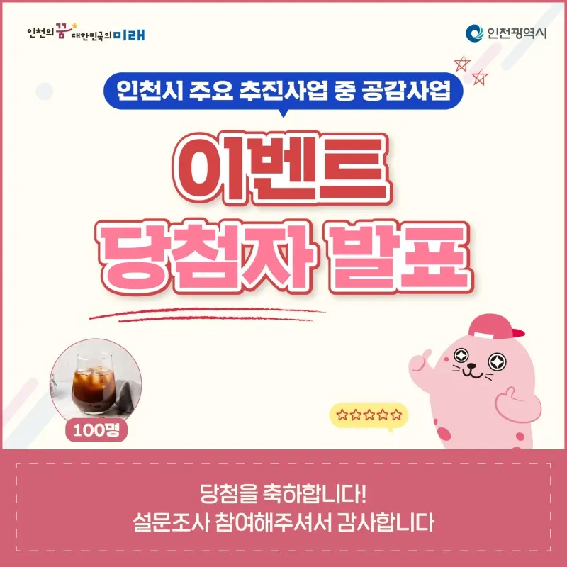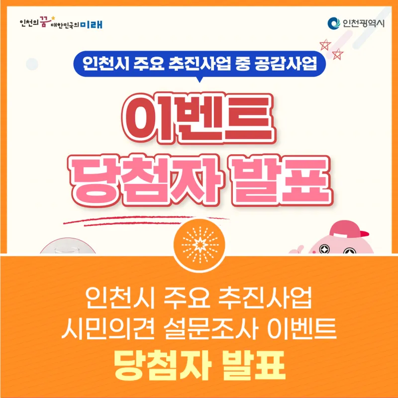 인천시 주요 추진사업 시민의견 설문조사 이벤트 당첨자 발표!