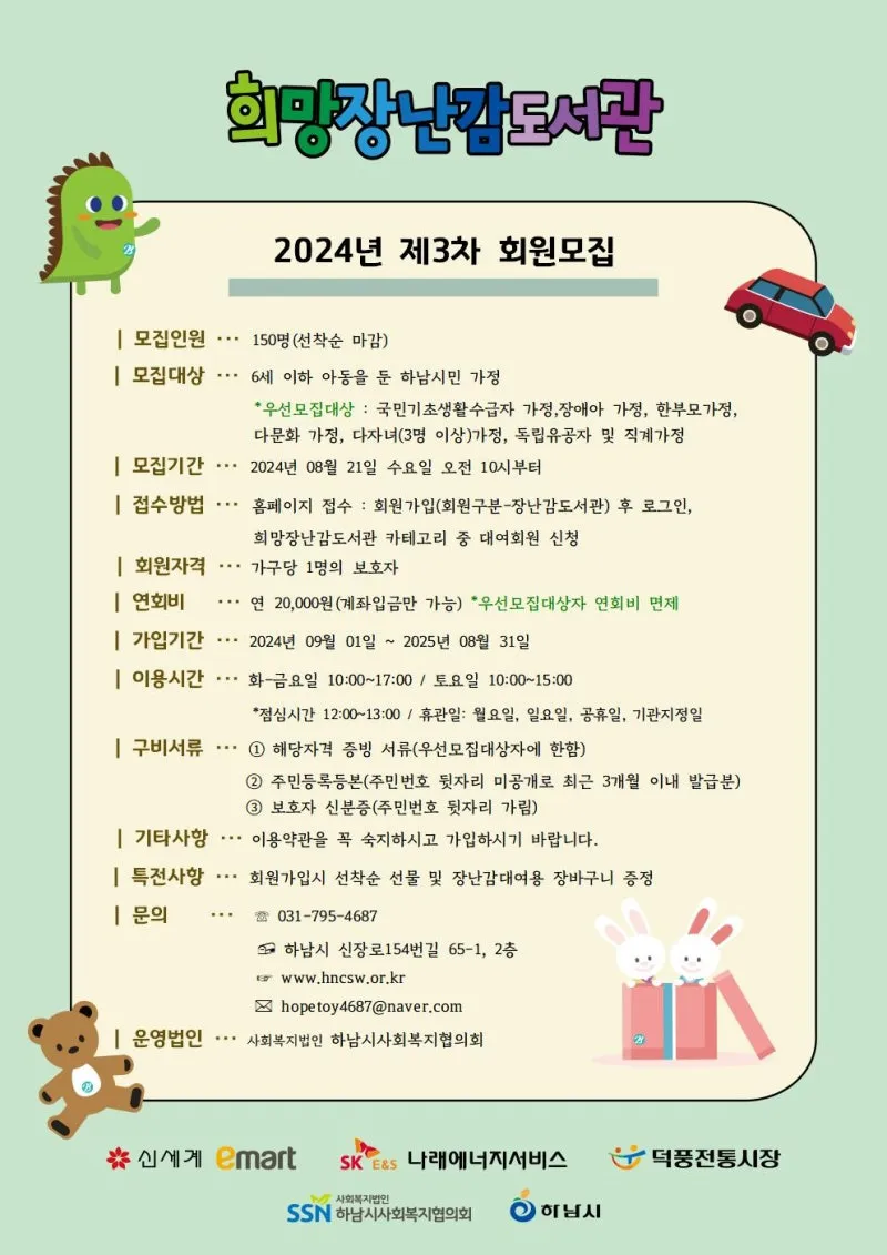 2024년 제3차 하남시 희망장난감도서관 회원모집하남!