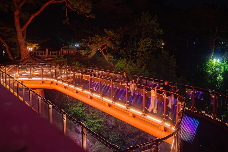 또한 용추폭포 위에 만들어진 유리다리는 짜릿한 스릴과 함께 아름다운 풍경을 감상할 수 있는데요.