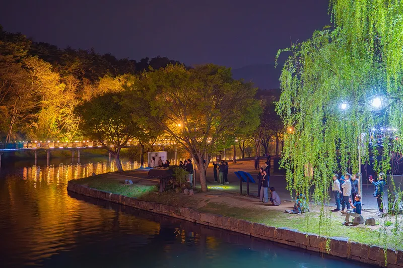 화려한 조명으로 장식된 의림지는 낮과는 또 다른 매력을 뽐내며, 늦은 밤에도 많은 사람들이 찾는 인기 명소임을 확인할 수 있었습니다.