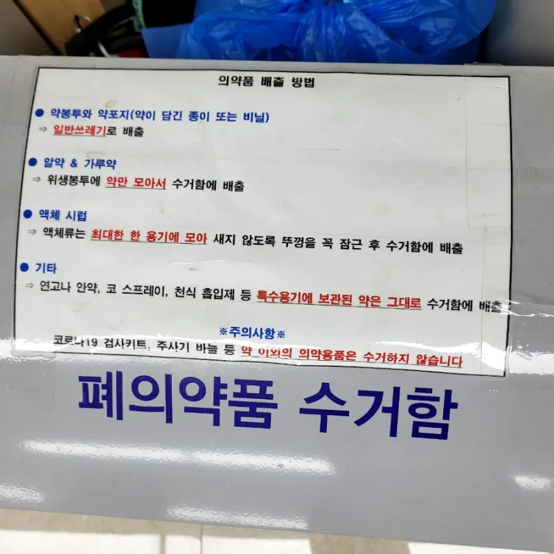 처방받아 약국에서 조제한 물약만 수거함에 배출