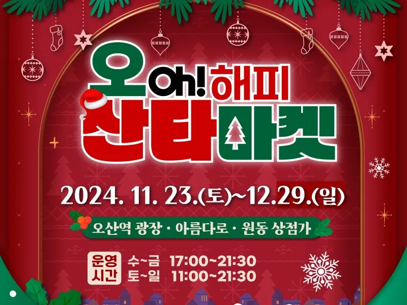 오산시는 오는 11월 23일부터 12월 29일까지 오산역 광장, 아름다로(舊 문화의 거리), 원동 상점가 일원에서 ‘오(oh)! 해피 산타마켓’을 진행한다고 밝혔다.