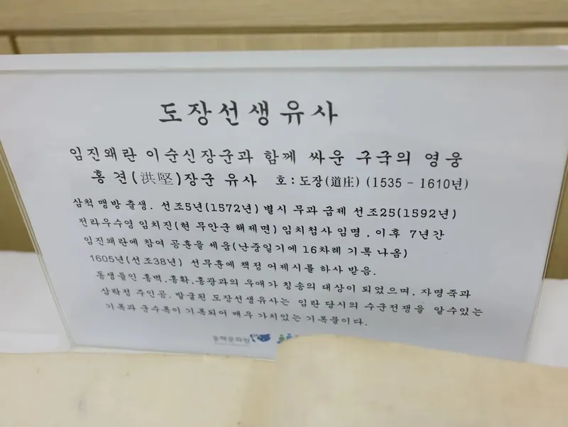 임진왜란 때 이순신 장군과 함께 싸웠다는 홍견 장군의 도장선생유사 이야기.