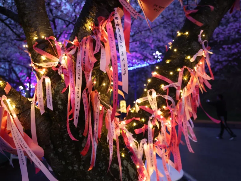 벚꽃나무에 주렁주렁 매달린 소원들 보이시나요?