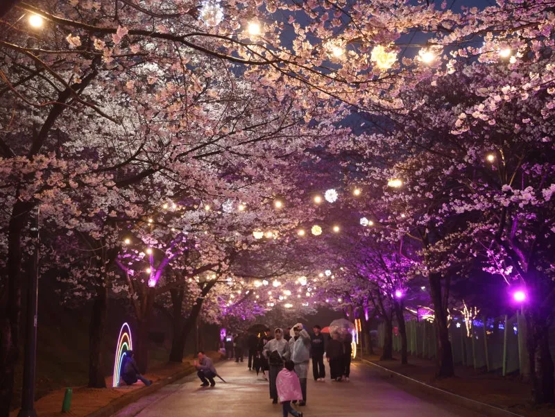 2025 고창 벚꽃축제, 낮보다 더 아름다운 황홀한 야경 데이트, 4월 중순까지 볼 수 있어요.