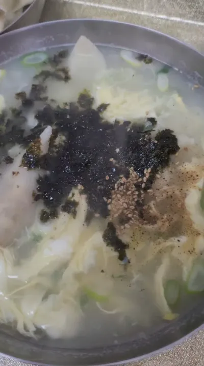 찹살풀, 백설탕(약간), 대파, 소금(약간)을 사용해요!