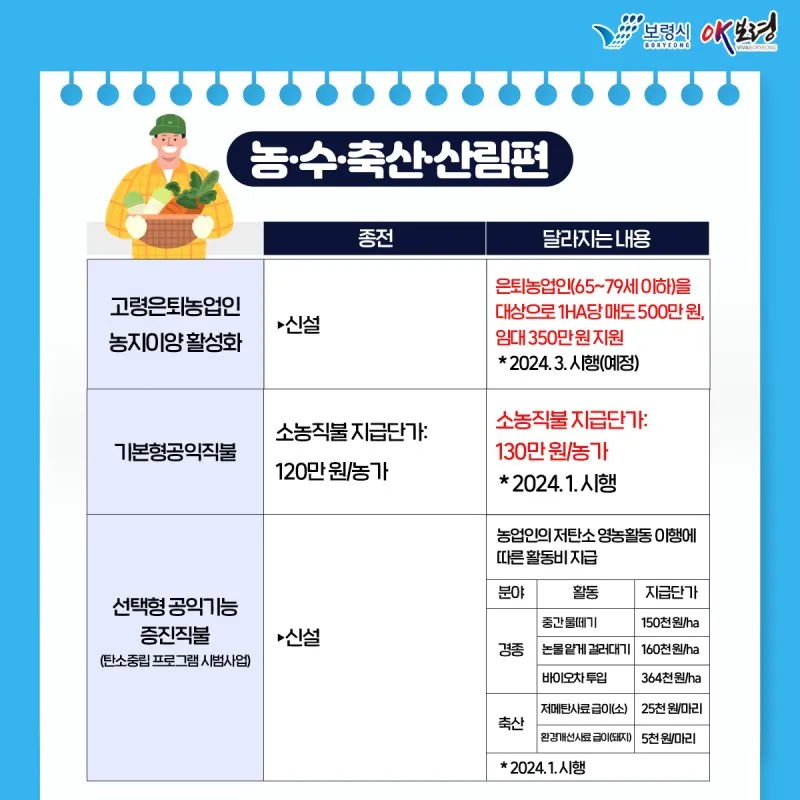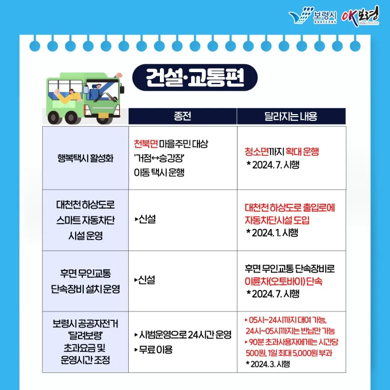 2024년에 달라지는 보령시 제도 총정리입니다!