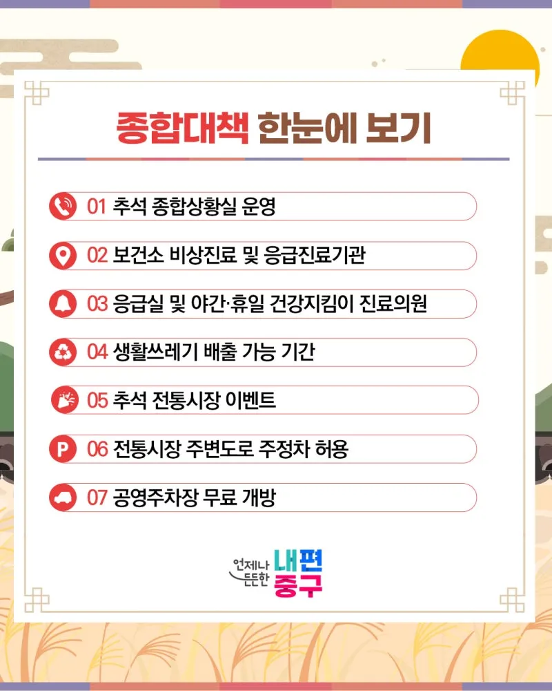중구에서는 「2025년 추석명절 종합대책」을 수립하여 안내드립니다.