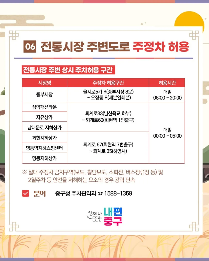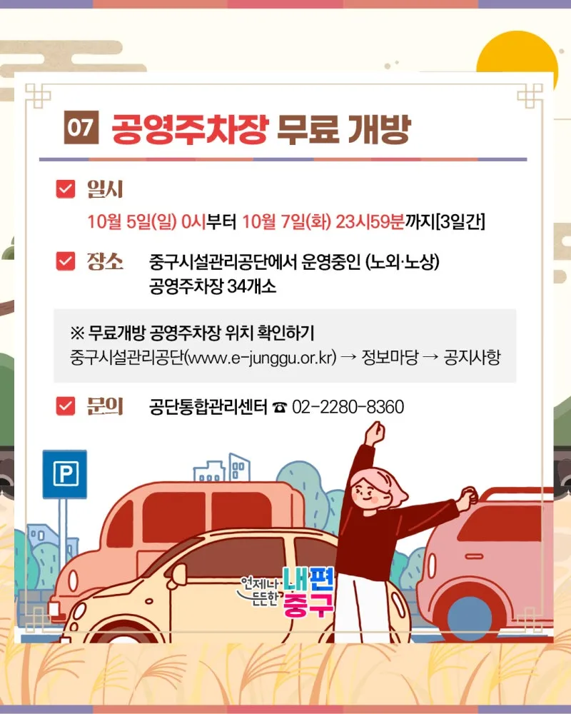 <2025년 중구 추석 종합대책> 안내|전통시장 이벤트, 무료주차장 등