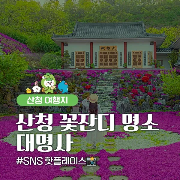 산청의 떠오르는 명소이자 사찰을 꽉 메운 꽃잔디가 아름다운