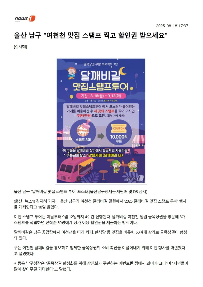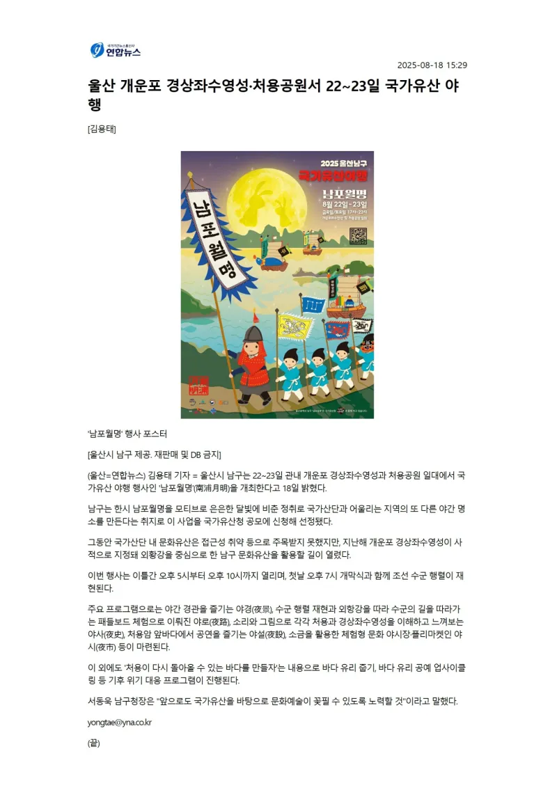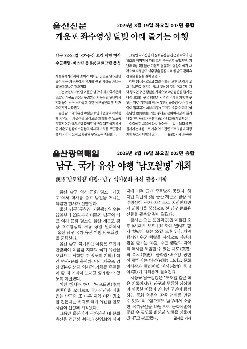 {"title":"[행복남구 오늘의신문] 🌜개운포경상좌수영성에서 열리는 남포월명 다들 보러오실꺼죠?🌝🌛 (●'◡'●) (8월 19일 화요일)","source":"https://blog.naver.com/ulsan-namgu/223975372185","blogName":"울산광역시..","domainIdOrBlogId":"ulsan-namgu","nicknameOrBlogId":"울산광역시남구청","logNo":223975372185,"smartEditorVersion":4,"meDisplay":true,"lineDisplay":true,"outsideDisplay":false,"cafeDisplay":false,"blogDisplay":false}