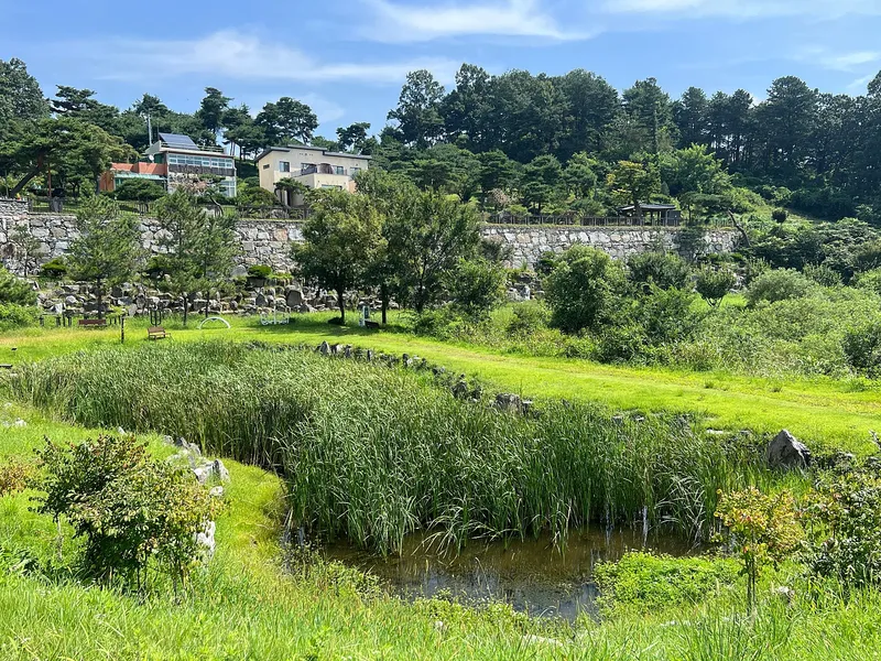 마을 주변에서 발생하는 우수를 생태습지 내로 모여 습지에 식재된 수생식물을 통해 수질정화를 하기 위한 목적입니다.