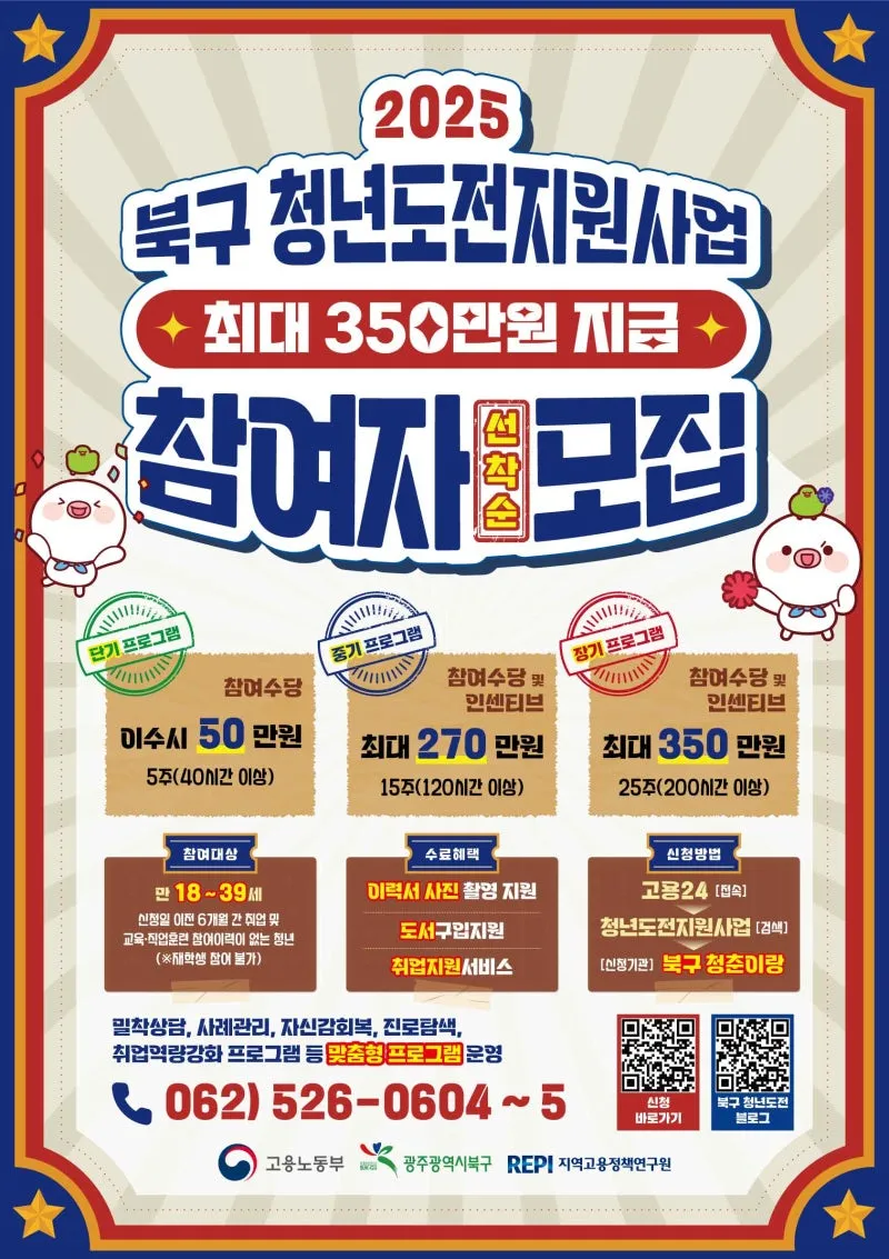 문의사항 : ☎️062-410-6578(북구청 청년미래정책관), ☎️062-526-0604~5(북구 청년도전 지원사업팀)