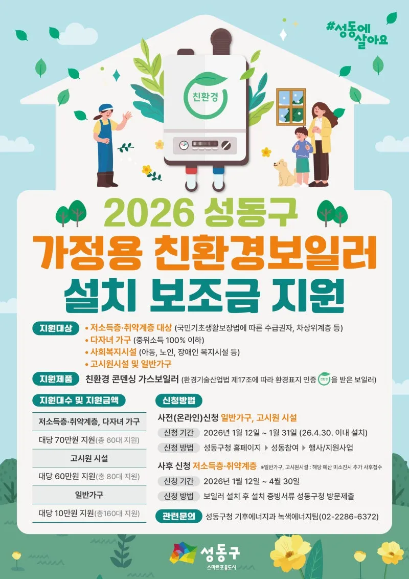 - 신청방법: 보일러 설치 후 신청 및 증빙서류 성동구청 기후에너지과(13층) 제출