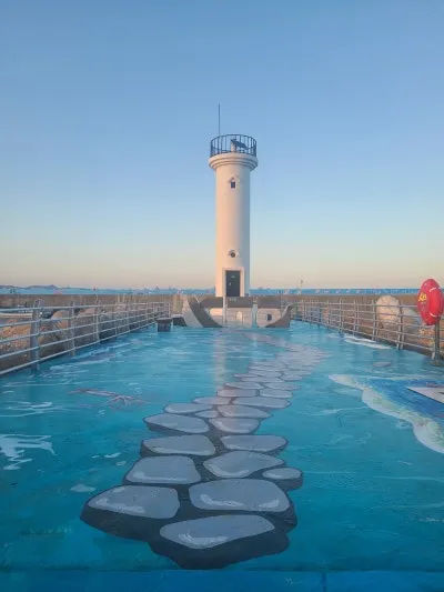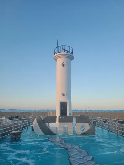 하얀 등대 앞에 대진항 이름 똬악!ㄷㅈㅎ