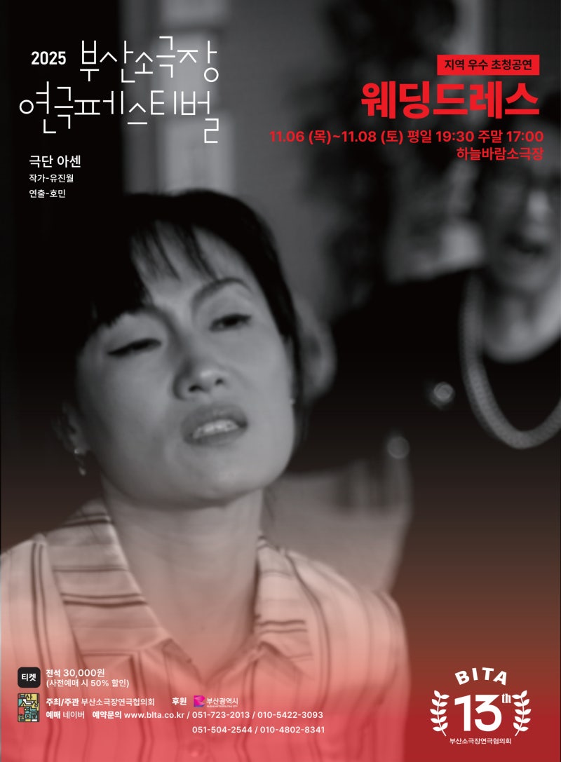 웨딩드레스 ◾ 일자 : 2025.11.6 (목) ~ 2025.11.8 (토) ◾ 시간 : 평일 19:30 주말 17:00 ◾ 장소 : 하늘바람소극장 ◾ 문의 : 051-723-2013 / 010-5422-3093 / 051-504-2544 / 010-4802-8341 |