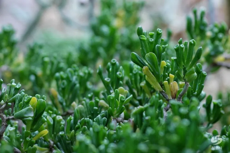 다육식물인 염자는 남아프리카가 원산지이며, 두꺼운 잎에 수분을 넉넉히 머금고 있어서 5~6개월 동안 단수해도 살아나는 건조에 강한 식물로서 성장 시기는 가을부터 봄까지 겨울 생장형 식물이랍니다.