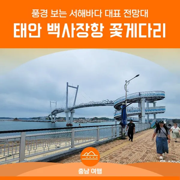 태안 백사장항에 위치한 꽃게다리는 백사장항과 드르니항을 잇는 인도교입니다. 말 그대로 차량 진입이 불가능하며 사람만 오갈 수 있는 장소로 꽃게다리 위에서 바라보는 태안의 일몰 풍경과 서해바다 모습은 최고 장소입니다.