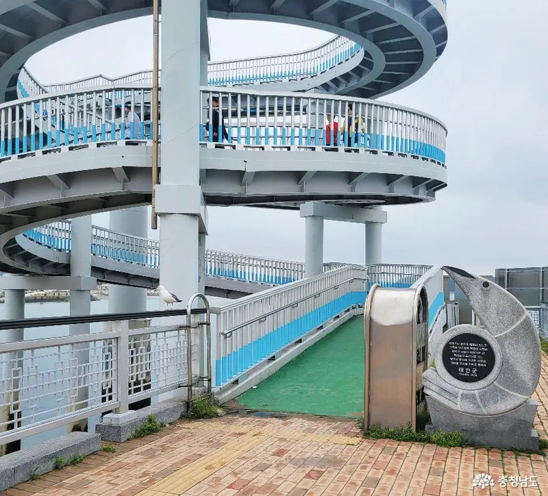 꽃게다리 주변에는 공사를 자주 하는 것 같았습니다. 제가 방문했을 때도 주차장에서 꽃게다리로 이동하는 공간에 공사가 진행 중이었습니다. 꽃게다리는 빙글빙글 돌며 정상으로 올라가야 합니다. 올라가면서 바닷바람에 다리가 흔들거리는 느낌을 받는 기분도 느낄 수 있습니다.