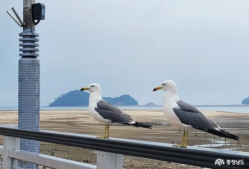 꽃게다리를 내려오니 갈매기 한 쌍이 반겨주고 있었습니다. 꽃게다리를 방문할 때마다 갈매기가 정말 많다는 것 을 느꼈는데, 사람도 무서워하지 않는 것 같았습니다. 주말에 서해바다의 매력을 느끼고 싶은 분들에게 강력 추천합니다. 서해바다 꽃게다리를 방문해보면 좋을 것 같습니다.