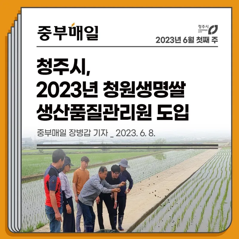 시 관계자는 "청원생명쌀의 품질 향상을 위해 청원생명쌀 생산품질관리원이 현장을 방문해 지도하는 첫해인 만큼 청원생명쌀 계약재배 농가들의 협조가 무엇보다 필요하다"며 "청원생명쌀 고품질화를 위해 재배부터 수매까지 전 과정을 관리하는 등 더욱더 최선을 다 하겠다"고 말했다.