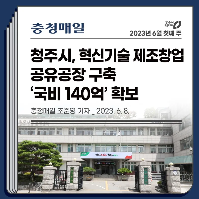 충북 청주시가 중소벤처기업부 주관 ‘혁신기술 제조창업 공유공장 구축사업’ 적격성 평가에서 적정 판정을 받아 국비 140억원을 확보했다.