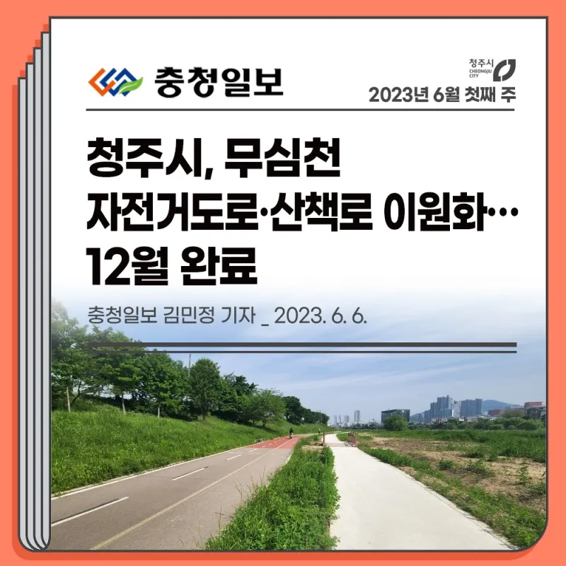 무심천 자전거도로와 산책로가 구분됩니다. 자전거 타는 시민과 걷는 시민 간의 사고 위험이 줄어들 전망인데요, 자세한 내용을 충청일보 김민정 기자가 보도했습니다.